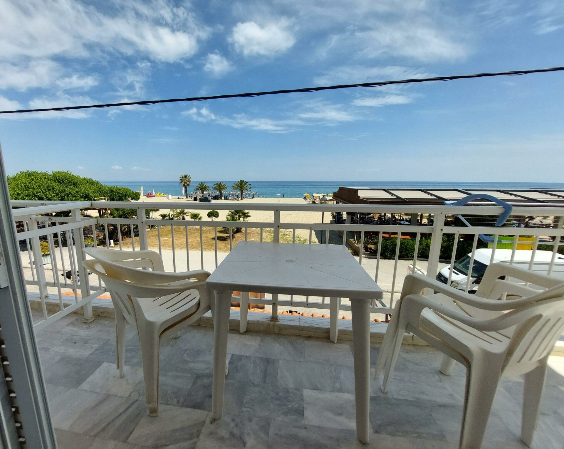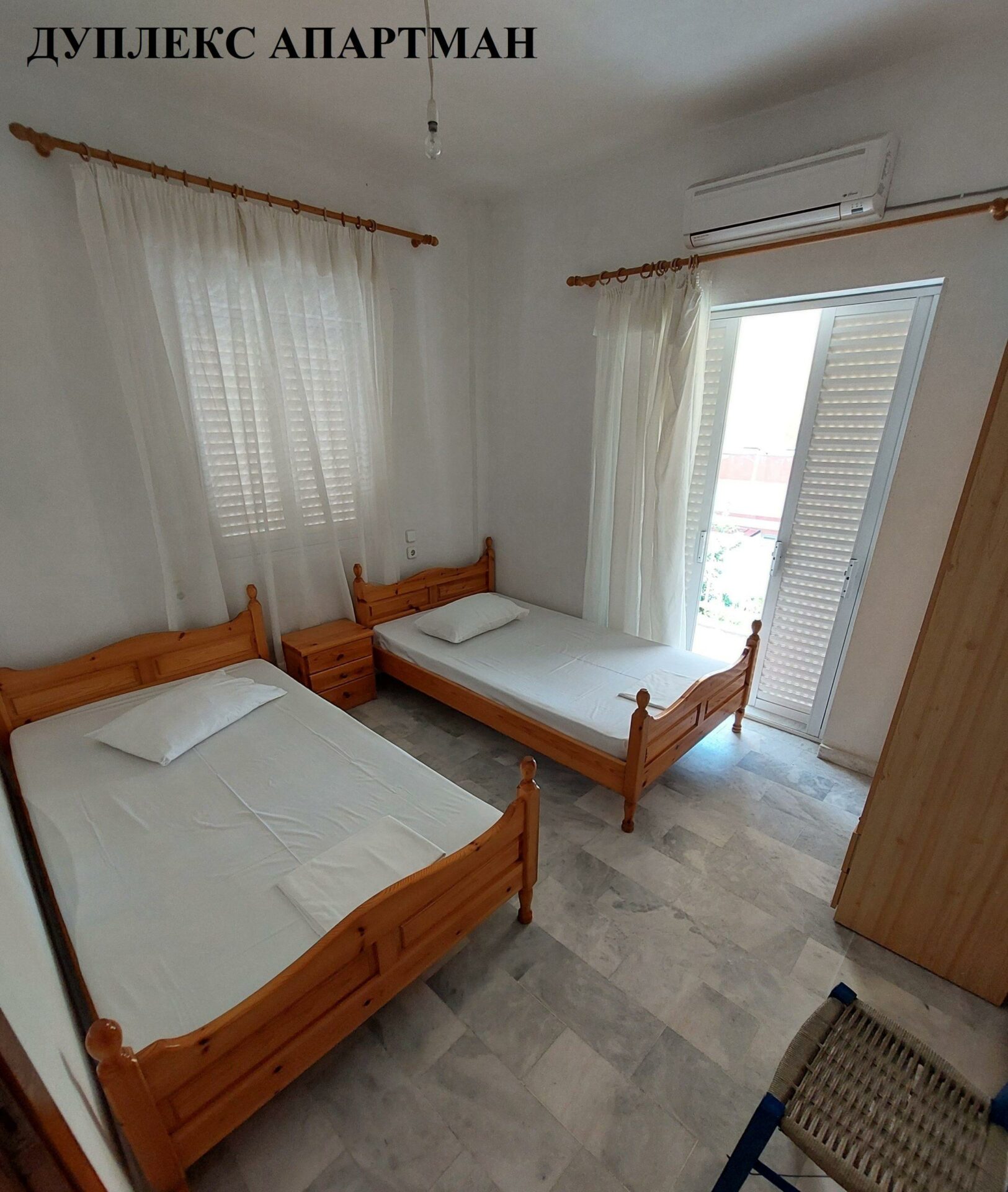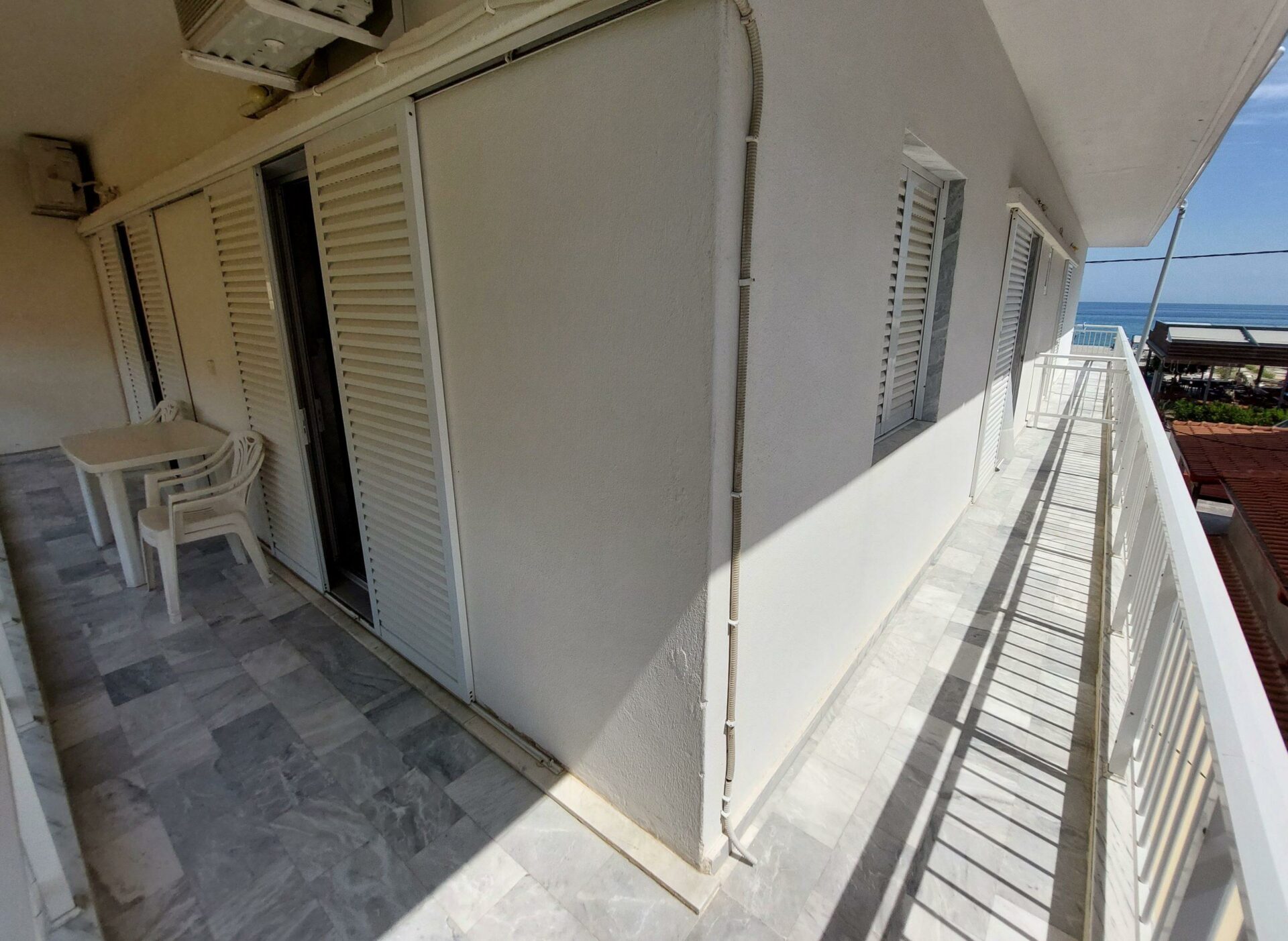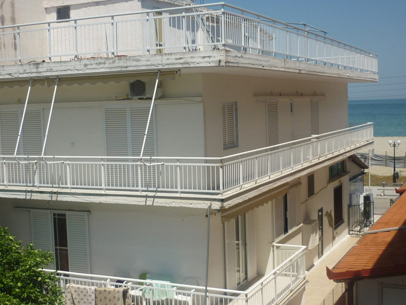ВИЛА ГЕОРГИЈА на сама плажа, располага со 1/4 студио(еден дупли 2 поед.кревети-Грчки стандард), апартман 1/3 + 2(дупли кревет-грчки стандард) и апартман дуплекс 1/3+1/3 за две фамилии (по два дупли кревети грчки стандард), сите со поглед према море, опремена кујна,ТВ, WI – FI, купатило, комфорни тераси и клима уред – (доплата по 5 € на ден по соба).