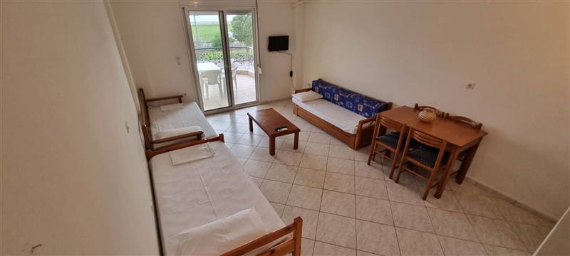 Вила СТЕЛА е лоцирана во близина на игралиштето на Неа Флогита 50 метри од плажа, со поглед на море. Апартманот е 6-креветен на први спрат. Располага со 2 простории. Спална соба со брачен и единечен кревет од која се излегува на тераса, купатило, дневна соба со три единечни кревети, во истата просторија е кујната – опремена со голем фрижидер и шпорет со релна и тераса со поглед на море. Климата и ТВ се во дневната просторија.