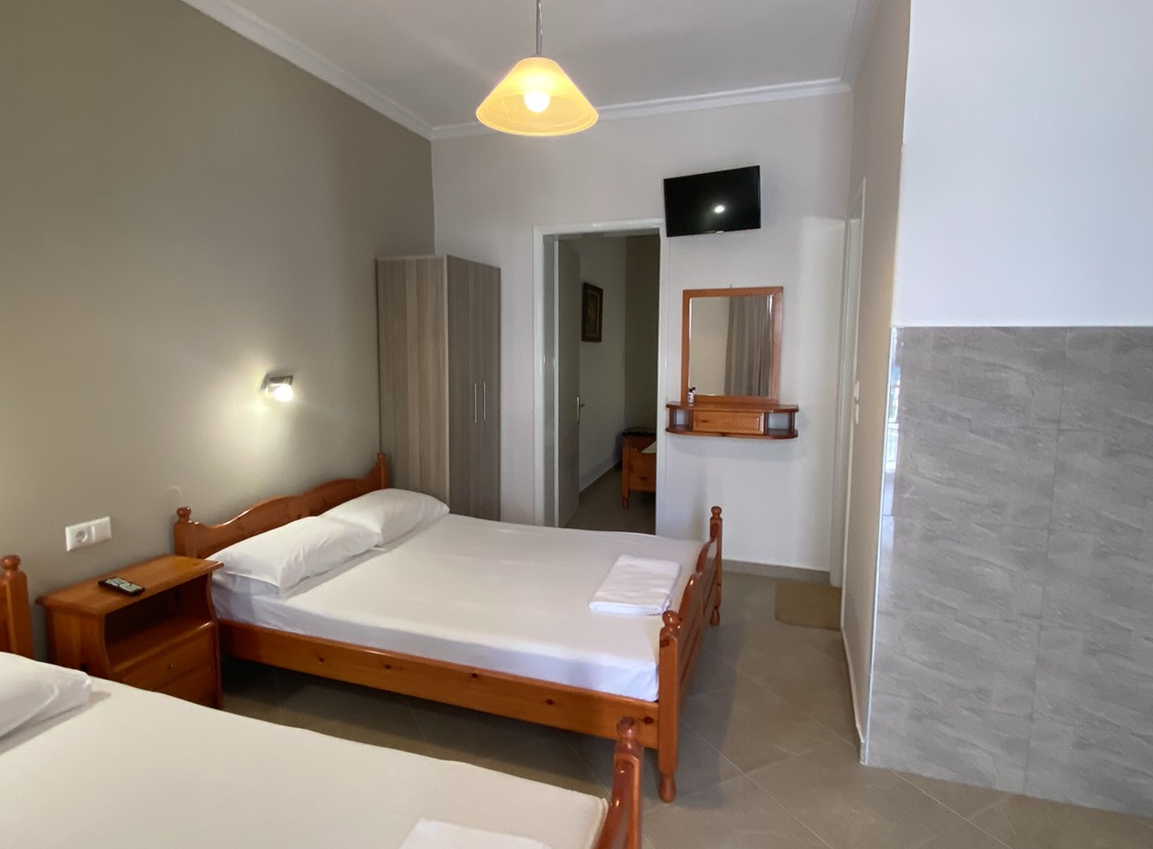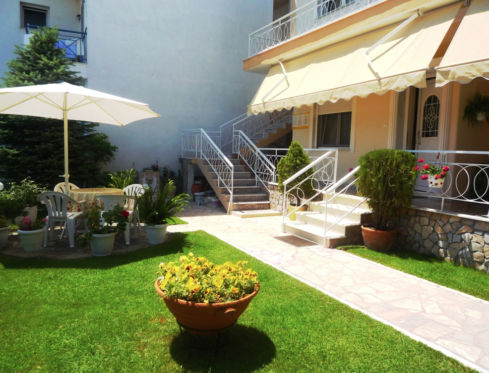 Вила “VANGELIS” се наоѓа на 150m од плажа, веднаш до хотел “Eleni” во Лептокарија. Располага со двокреветни и трокреветни студија.. апартман со една спална за 5 лица и дуплекс апартман со две одделни спални соби за 5 лица. Во двокреветните студија има 2 единечни легла, во трокреветните има еден брачен и еден единечен, во апартманот со една спална има еден брачен во спалната, а еден брачен и еден единечен во кујната, додека во дуплекс апартманот има три единечни во едната спална и две единечни во другата. Сите студија/апартмани се комплетно опремени со: кујна (со комплетен прибор за онолку лица према број на легла, фрижидер…), тоалет, огледало, туш, балкон (масичка со столчиња), клима, ТV, гардеробер. На располагање на гостите е бесплатен   интернет. Студијата и апартмани се на високо приземје и први кат. Прекрасно уредениот двор ги воодушевува сите кои случајно или намерно минуваат покрај вилата.