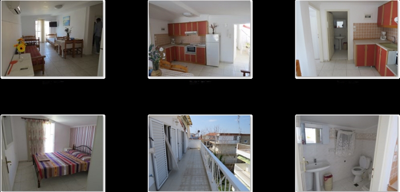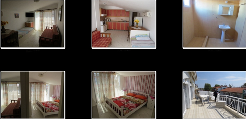 АПП БР.1 – 1/4 Апп на Трет кат. Располага со 2 простории. Спална соба со брачен кревет, купатило, дневна соба со два единечни кревети. Во истата просторија е кујната, опремена со голем фрижидер и шпорет со релна, голема тераса. Климата и ТВ се во дневната просторија.