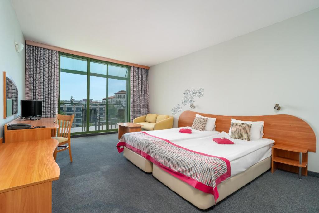 Објектите за јадење вклучуваат снек-бар, лоби-бар и главен ресторан со тераса на отворено, кој нуди дневно мени, здрави закуски и голем избор на алкохолни и безалкохолнипијалоци. Хотелот нуди надворешен паркинг и отворен фитнес центар, мини голф, видео игри и билијард.